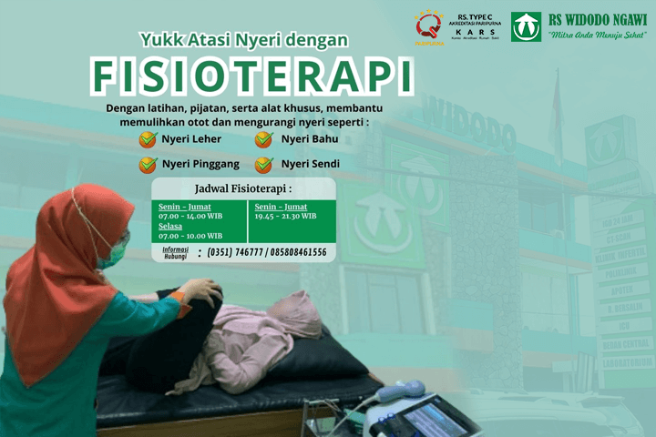 Bagi sahabat sehat yang mempunyai keluhan seperti diatas, yukkk kunjungi Poli Fisioterapi Rumah Sakit Widodo Ngawi…agar segera dilakukan penanganan yg tepat sahabat sehat ✨